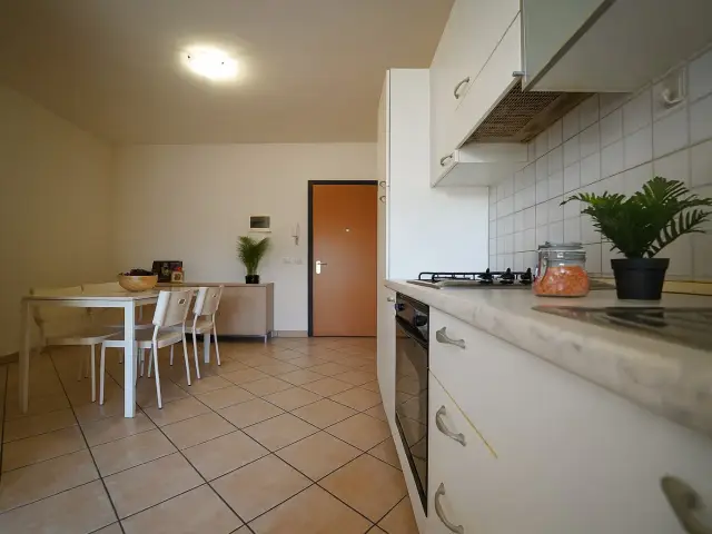 L’abitazione si compone di un accogliente soggiorno con cucina a vista, perfettamente organizzato e funzionale, una camera matrimoniale e un bagno con antibagno e box doccia.