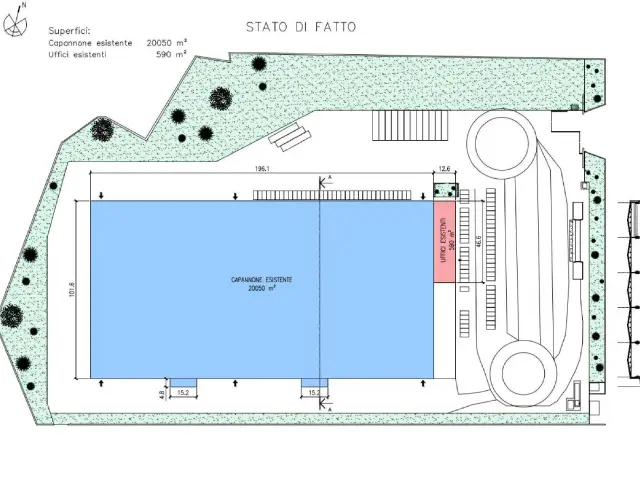 Nel capannone sono presenti anche mq. 590 di uffici.