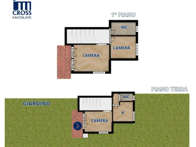 Il villino, sviluppato su due livelli per un totale di 106 mq interni, offre una distribuzione degli ambienti pratica e funzionale. Al piano terra si viene accolti da un ingresso che conduce al luminoso salone, alla cucina e a un bagno di servizio, oltre a un balcone che amplia la vivibilità della zona giorno. Una scala interna collega al primo piano, dove si trovano due camere da letto e un ulteriore bagno, garantendo spazi ben separati e ideali per chi desidera comfort e autonomia. L’immobile è circondato su tre lati da un magnifico giardino privato di circa 320 mq, un vero valore aggiunto che permette di godere di ampi spazi esterni per momenti di relax, convivialità e attività all’aria aperta.