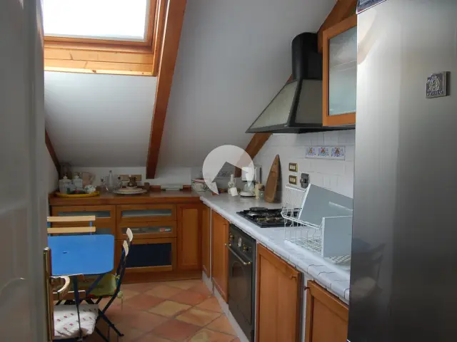 Composto da ampio soggiorno con terrazzino vista tetti, cucina abitabile con angolo cottura in muratura, camera matrimoniale e bagno.
