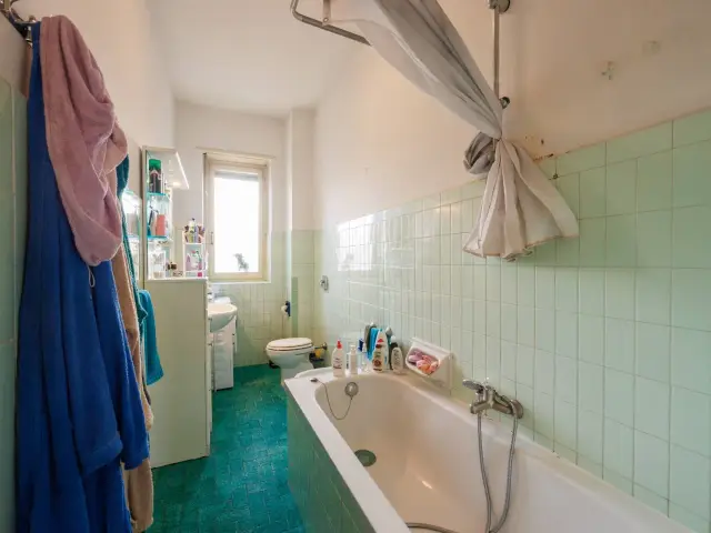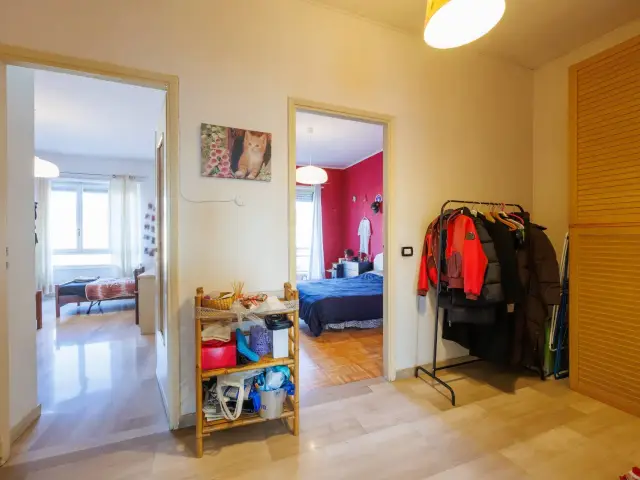 Luminoso appartamento di 78 mq c.a. con doppia esposizione e vista Superga collocato al nono ed ultimo piano di uno stabile degli anni Sessanta dotato di ascensore e servizio di portineria.