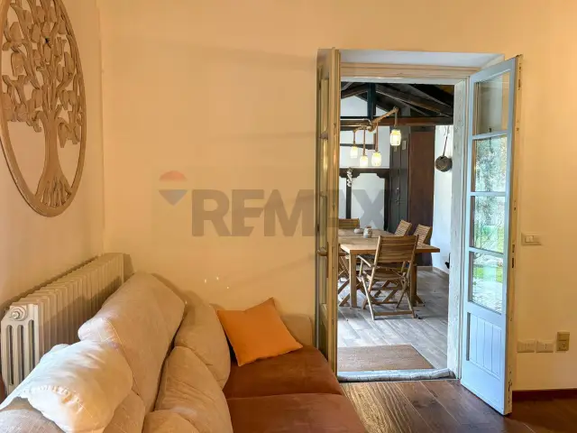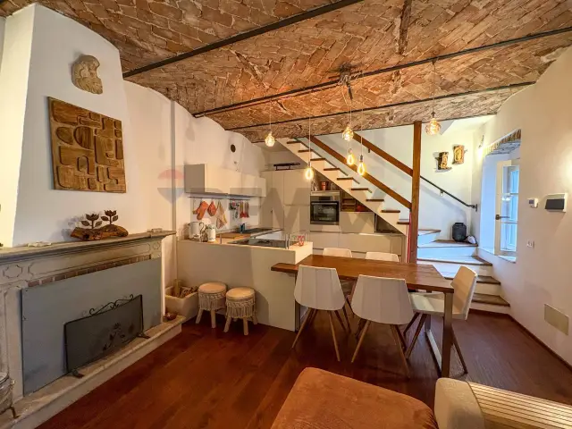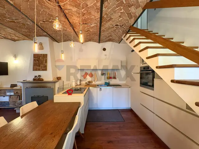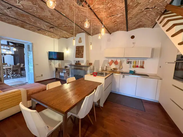 una casa su 2 livelli, calda e accogliente, con volte in mattoni a vista, uno splendido camino con pietra originale di Viggiù e un parquet in legno naturale che conferisce quel tocco elegante e rustico che le si addice perfettamente.