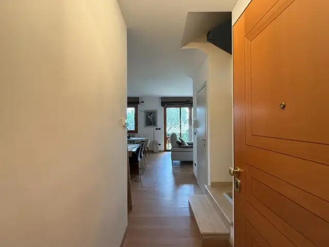 L'abitazione, con doppio ingresso e sviluppata su più livelli, accoglie al piano terra una spaziosa zona giorno con bagno di servizio e accesso diretto al giardino, perfetto per momenti di relax all’aperto. Al piano superiore troviamo un'ampia camera matrimoniale con bagno privato e balcone, mentre l’ultimo livello ospita due ulteriori camere da letto, entrambe con balcone e una splendida vista panoramica, oltre a un comodo bagno con vasca.