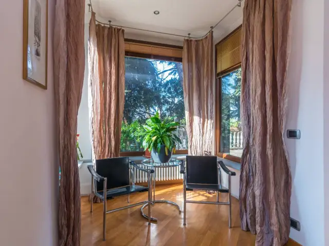 Importanti dettagli caratterizzano la villa: ingresso da viale alberato, comodo parcheggio interno, aria condizionata, impianto antifurto, vetrate antisfondamento, persiane e tapparelle elettrificate, predisposizione per pannelli solari.