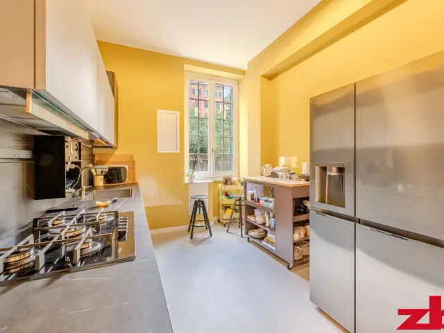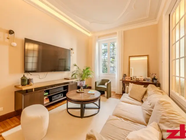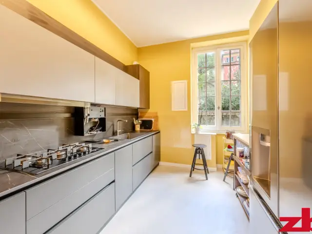 L'appartamento è stato completamente ristrutturato per quanto riguarda gli impianti, gli infissi, i bagni e la cucina; l'impianto di aria condizionata è canalizzato e tutto può essere controllato anche a distanza grazie alla domotica. Sono stati conservati i bellissimi pavimenti come la graniglia dell'ingresso e il parquet del salone. La posizione è ottimale, a 100mt dal mare e da Corso Italia e a due passi da Via Piave e da Esselunga.