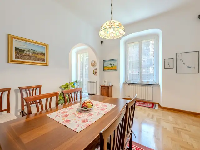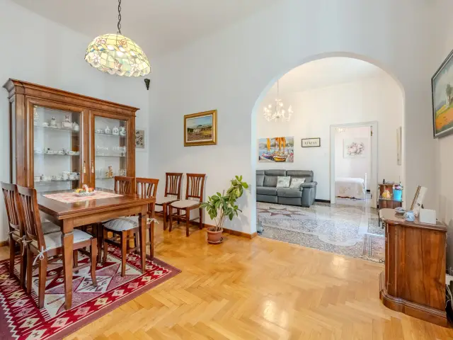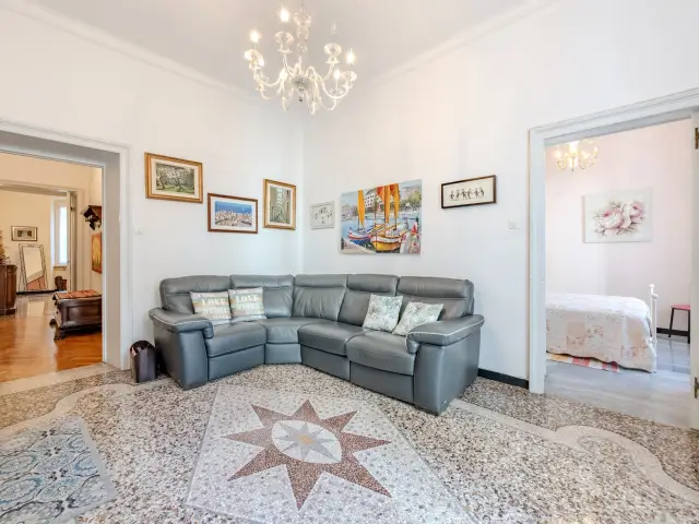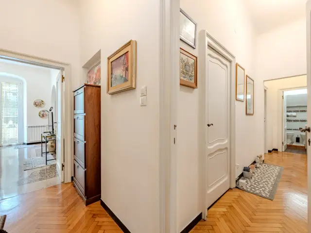 Questo appartamento gode di ottima esposizione su tre lati con vista aperta sulla Via. Di grande pregio i pavimenti originali in graniglia genovese, perfettamente conservati, affiancati da parquet a spina di pesce, che conferiscono carattere ed eleganza agli ambienti.