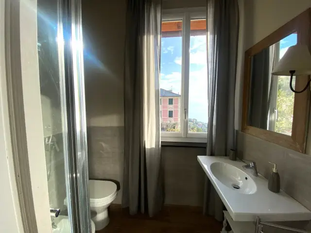 Due camere da letto matrimoniali e una terza per gli ospiti, oltre un vano da poter utilizzare come spogliatoio dividono la zona notte da quella giorno dove il salotto affaccia su un'incantevole e generoso balcone, attrezzato con tavolino e sedie, dove poter godere dall'alba al tramonto di una vista mozzafiato dal promontorio di Portofino a Capo Mele.