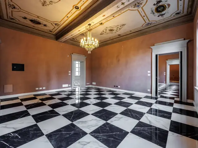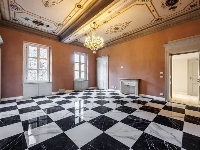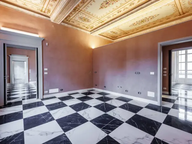Tutti i soffitti sono affrescati e finemente restaurati, elemento di assoluto pregio che rende ogni ambiente unico ed elegante.