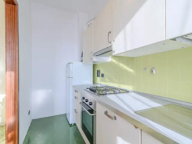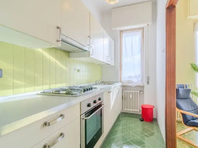 La zona notte ospita una camera da letto matrimoniale, ben proporzionata e silenziosa, mentre il bagno e un pratico ripostiglio completano la distribuzione interna, rendendo l’appartamento funzionale e versatile anche in ottica residenziale stabile.