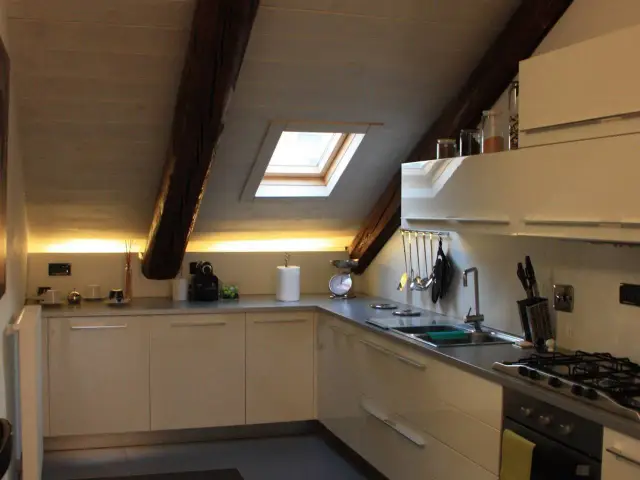 In splendido stabile Liberty di inizio novecento, a pochi minuti a piedi dalla fermata della Metro "Principi d'Acaja", prestigioso appartamento mansardato alto (altezza massima quattro metri) al quinto piano con ascensore. È composto da ingresso, ampia zona giorno con bow window, cucina con tutti gli elettrodomestici (lavatrice compresa), camera, bagno, terrazzino (parzialmente coperto), ripostiglio e cantina. L'unità è finemente ristrutturata e completamente arredata (arredi su misura), gode di doppia esposizione e di ottima luminosità. Il riscaldamento è autonomo. C'è l'impianto di allarme sia volumetrico che perimetrale e l'impianto di aria condizionata (uno split in camera da letto). La pavimentazione è in rovere termotrattato. Lo stabile è in ottime condizioni generali, il rifacimento dei balconi e del tetto è stato ultimato in primavera 2022. Disponibile dal 1 maggio 2026