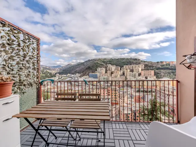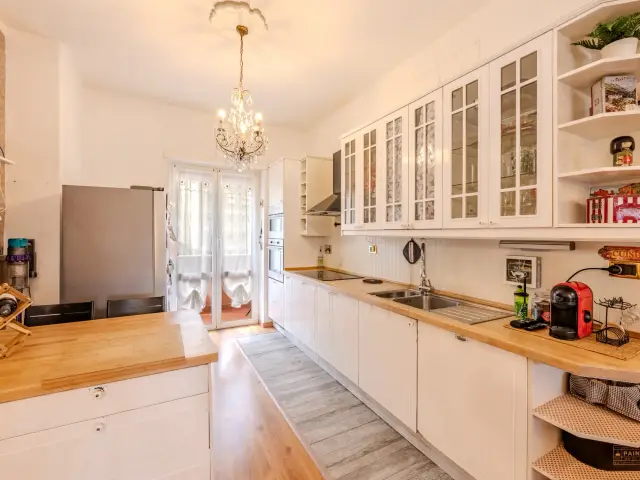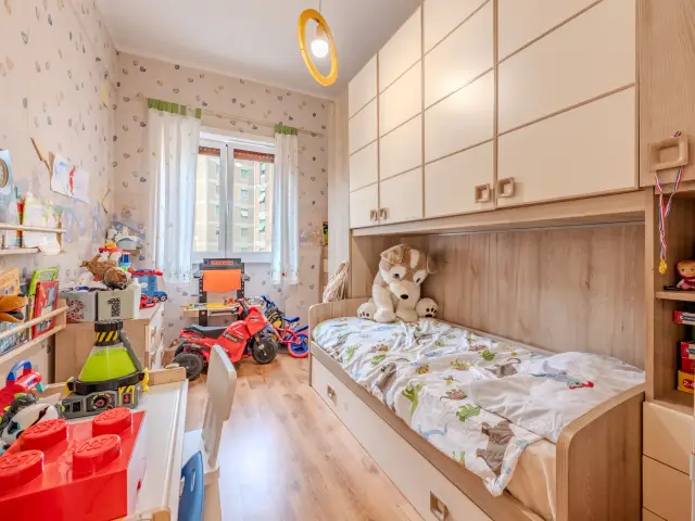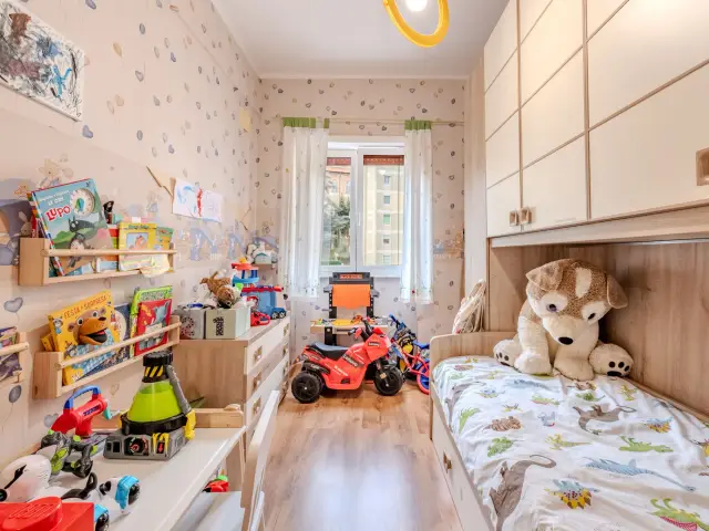 In via delle Ginestre, in contesto ordinato e ben curato, proponiamo in vendita luminosissimo appartamento di 92 mq posto al quinto piano con ascensore. L’ingresso conduce direttamente a una ampia zona giorno biesposta levante/ponente, che garantisce sole per l’intera giornata. Il soggiorno con cucina a vista è arricchito da un balcone di servizio.