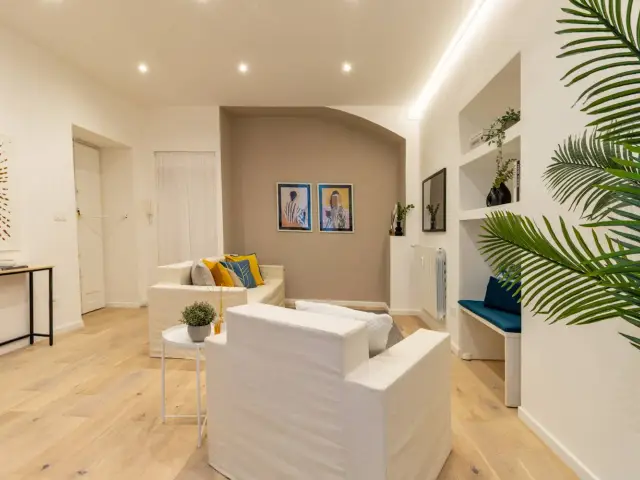 L'elegante ristrutturazione e la ricercatezza dei materiali conferiscono all'appartamento un'atmosfera molto raffinata.