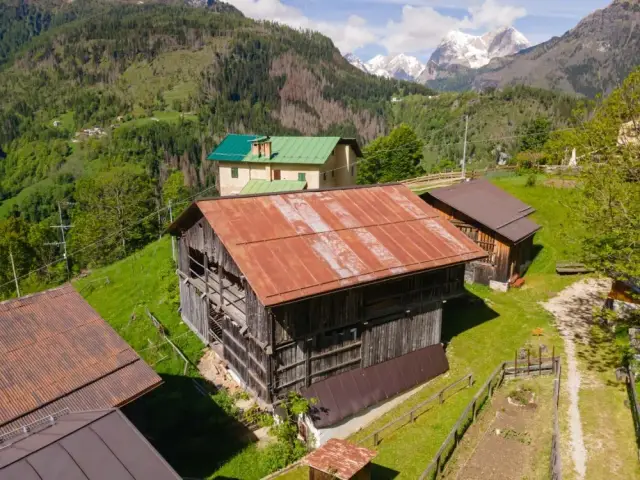 Tra le maestose vette delle Dolomiti, sorge questo gioiello di autenticità e storia: un tabià da ristrutturare nella suggestiva località di Pian di Alleghe.