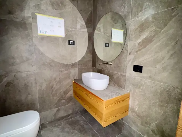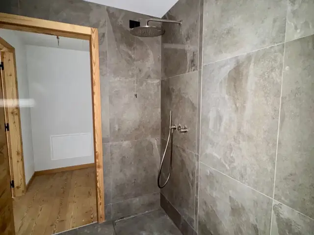 Bilocale al primo piano con pavimenti in larice naturale e bagni in gres con finitura ardesia sono garanzia di alta qualità. Impianto di deumidificazione dell'aria per garantire la salubrità dell'appartamento.
