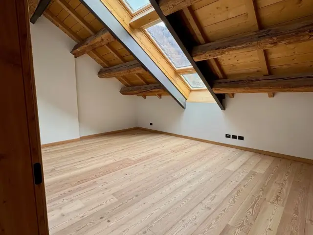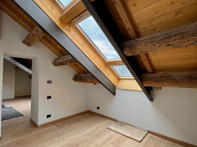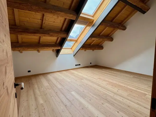 L'attico è dotato di ascensore che arriva direttamente al piano, mentre le velux cabrio a balconcino offrono una vista incantevole sulle Dolomiti circostanti e una luminosità senza pari. Un’aggiunta che conferisce esclusività e carattere a questa residenza d'elite.
