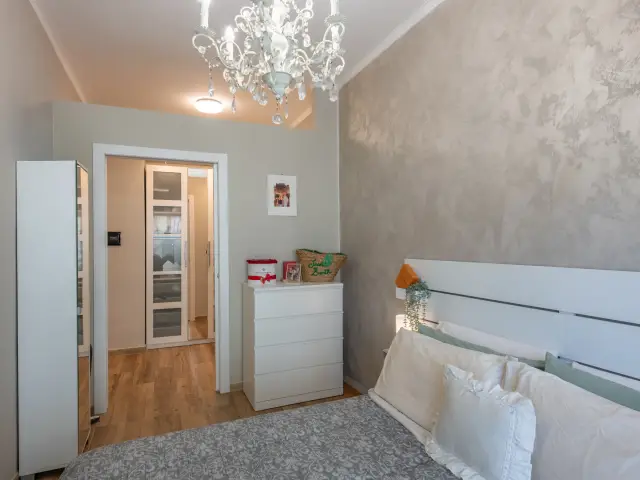 La camera da letto è luminossima con ampia finestra e accesso alla balconata. Il bagno è finestrato e con ampio box doccia.