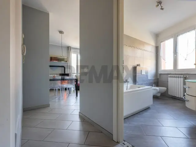 La zona notte ospita due camere da letto, adatte sia a una famiglia con bambino, sia a giovani che desiderano una stanza in più per studio, ospiti o home office. I doppi servizi sono un plus fondamentale: niente attese al mattino e massima praticità nella gestione della vita di tutti i giorni.