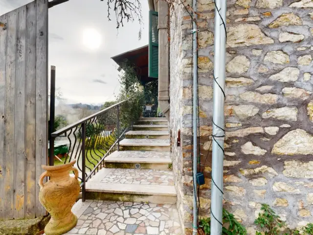 A Contigliano, nella zona centrale di Via della Valle 15, è disponibile una porzione di casale con accesso indipendente, articolata su tre livelli, con esposizione principalmente ad Est.