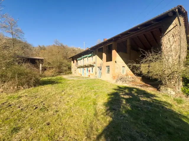 Immersa nel verde delle colline di Castagneto Po, vendesi affascinante cascina di fine '700 di, da ristrutturare, con 8 ettari di terreni circostanti e confinanti.