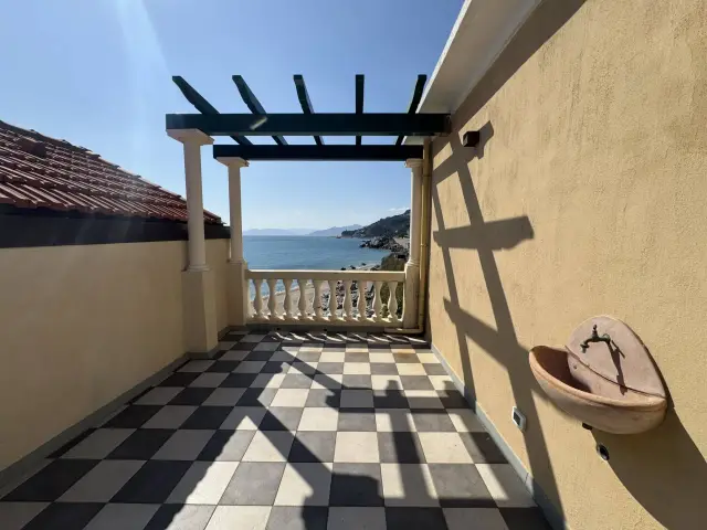 RIF. 1766 - Nella rinomata cittadina di Varigotti, in palazzo d'epoca affacciato sul mare, terracielo disposto su tre livelli con grande terrazzo affacciato sul mare. La casa è composta come segue: PIANO TERRA - ampio ingresso con bagno; PIANO PRIMO - soggiorno, cucina abitabile, camera da letto con bagno privato, ripostiglio, balcone, disimpegno con scala d'accesso al PIANO SECONDO seconda camera da letto ed ampio terrazzo con vista meravigliosa sul mare e sulla baia. L'immobile è libero su tre lati con esposizione nord est ovest, non ha spese di condominio. Pavimentazione in ceramica e graniglia decorata genovese, serramenti in doppio vetro pvc, riscaldamento autonomo, aria condizionata. La posizione rende questa casa unica nel suo genere. R.C. € 606,84.