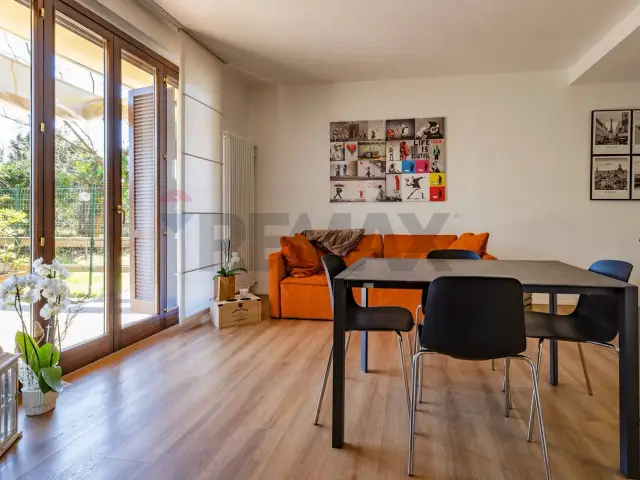 L'immobile si compone di un soggiorno con cucina a vista, con accesso diretto al giardino, che rappresenta una naturale estensione dello spazio abitativo. La camera da letto, anch'essa affacciata sul giardino, garantisce continuità tra interno ed esterno. Il bagno è stato completamente rifatto e si presenta in condizioni ottime, moderne e funzionali.