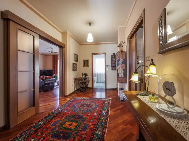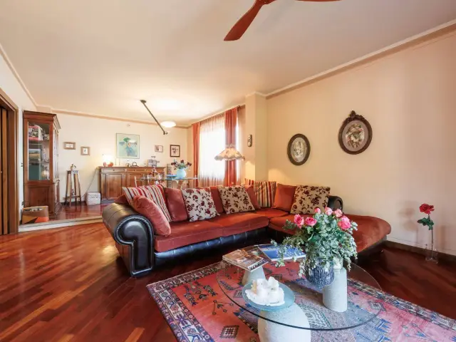Completano la proprietà impianto di riscaldamento centralizzato con radiatori in ghisa e valvole termostatiche, predisposizione per la contabilizzazione dei consumi, due caldaie a condensazione, infissi in legno, tapparelle in alluminio coibentato, impianto antifurto, videocitofono e cancello carraio automatizzato.